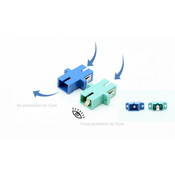 You can actuate this integrated, retractable shutter inside the adapter body by inserting the SC connector into the adapter. The shutter automatically opens as you insert the SC connector, and closes as you extract it. Due to the special design of the shutter, it will not touch the ferrule end face when you insert a connector, thus preventing end-face damage. The internal shutter prevents eye exposure to lasers and provides protection from dust and other contaminants.